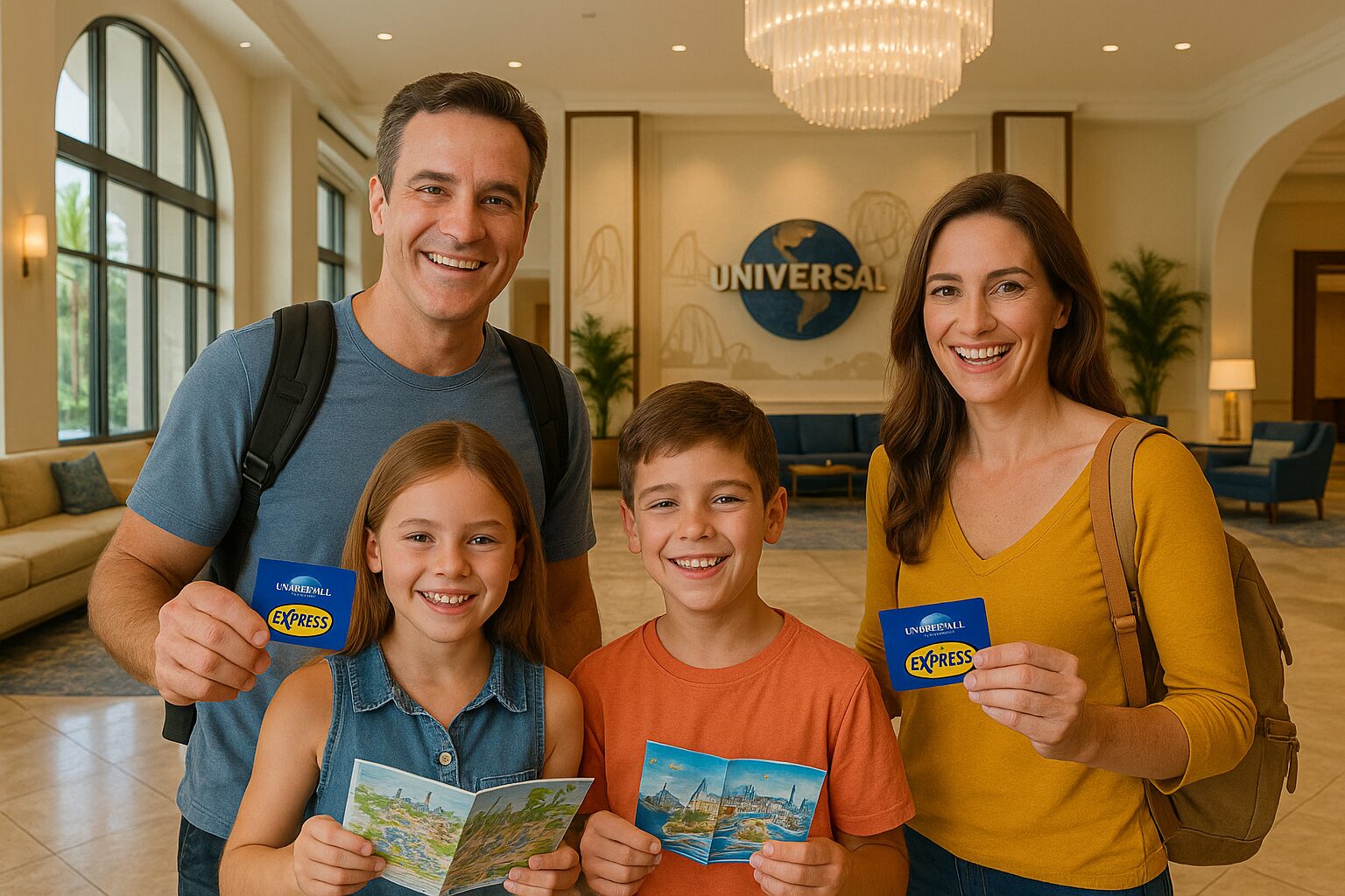 O Universal Express Pass é o passe que permite pular filas nas principais atrações dos parques da Universal. Existem duas versões: a comum (válida uma vez por atração) e a ilimitada, que permite repetir a experiência quantas vezes quiser 🔁. Nos hotéis Premier da Universal, o Express Pass Unlimited está incluso na sua diária e é entregue para todos os hóspedes registrados no quarto — mesmo crianças a partir de 3 anos 👧👦.
